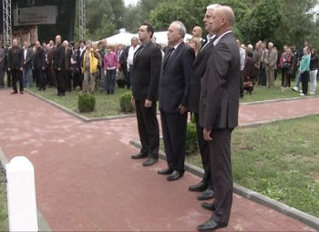 Сремска Митровица, 6. септембар 2014. године – Министар за рад, запошљавање, борачка и социјална питања у Влади Републике Србије Александар Вулин предводио је данас церемонију полагања венаца и одавања почасти код спомен-костурнице на пољу Легет код Сремске Митровице.
