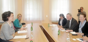 Београд, 18. септембар 2014. године – Потпредседник Владе Републике Србије и министар државне управе и локалне самоуправе Кори Удовички примила је данас делегацију Светске банке, коју је предводила руководилац глобалне праксе за друштвени, урбани и рурални развој Сари Содерстром.