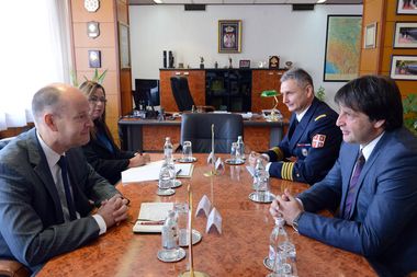 Београд, 6. октобар 2014. године – Министар одбране у Влади Републике Србије Братислав Гашић и представник генералног секретара УН и шеф Канцеларије УН у Београду Петер Дуе разговарали су данас о учешћу припадника Војске Србије у мултинационалним операцијама, као и о предстојећем регионалном састанку земаља контрибутора снага у УН.