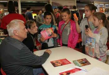 Бранко Милићевић Коцкица је рекао да је данас поделио 3.500 потписа деци која су дошла на сајам да купе књиге и да читају, и изразио задовољство великим бројем читалаца у тој популацији.