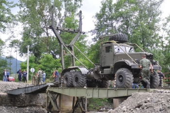 Медвеђа, 7. новембар 2014. године – Министар одбране у Влади Републике Србије Братислав Гашић наредио је ангажовање јединица Војске Србије на постављању понтонског моста у селу Гола Глава и санацији постојећег моста у Медвеђи.