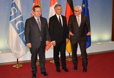 Београд/Берлин, 13. новембар 2014. године – Први потпредседник Владе Републике Србије и министар спољних послова Ивица Дачић разговарао је јуче у Берлину са министрима спољних послова Швајцарске и Немачке Дидијеом Буркхалтером и Франк-Валтером Штајнмајером о припремама за предстојећи министарски савет у Базелу.