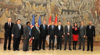 Београд, 19. децембар 2014. године – Министар унутрашњих послова у Влади Републике Србије Небојша Стефановић разговарао је данас са делегацијом конгресмена САД о сарадњи двеју земаља у области борбе против организованог криминала и тероризма и унапређењу владавине права.