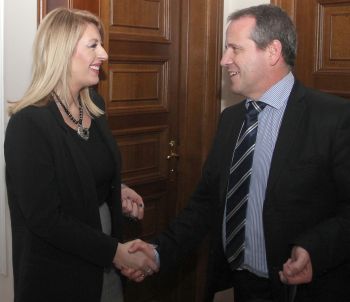Београд, 22. децембар 2014. године – Министар без портфеља у Влади Републике Србије задужен за европске интеграције Јадранка Јоксимовић и посланик из Словеније у Европском парламенту Игор Шолтес, који припада групацији Зелених, разговарали су данас о процесу европских интеграција у Србији и искуствима Словеније на том путу.