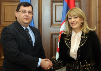 Београд, 26. јануар 2015. године – Министар без портфеља у Влади Републике Србије задужен за европске интеграције Јадранка Јоксимовић и амбасадор Мађарске у Србији Атила Пинтер оценили су да је билатерална сарадња између две земље најбоља у последњим деценијама.