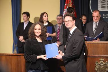 Београд, 27. јануар 2015. године – Министар просвете, науке и технолошког развоја у Влади Републике Србије Срђан Вербић уручио је данас Светосавске награде за допринос квалитетном образовању и васпитању за 2014. годину, које је освојило 13 појединаца и институција.