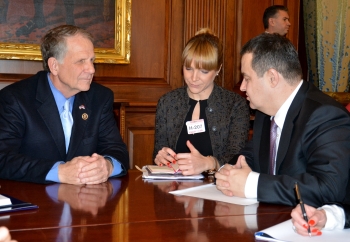 Београд/Њујорк, 5. фебруар 2015. године – Први потпредседник Владе Републике Србије и министар спољних послова Ивица Дачић разговарао је данас у Њујорку са председавајућим Српском кокусу у Конгресу САД конгресменом Тедом Поом о актуелним реформским процесима у Србији и активностима наше државе у својству председавајућег ОЕБС-у.