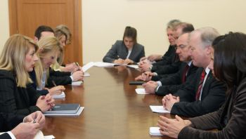 Београд, 11. фебруар 2015. године – Министар без портфеља у Влади Републике Србије задужен за европске интеграције Јадранка Јоксимовић разговарала је данас са представницима Посланичке групе пријатељства Немачке и југоисточне Европе у немачком Бундестагу, који бораве у посети Србији.