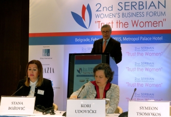 Београд, 20. фебруар 2015. године – Потпредседник Владе Републике Србије и министар државне управе и локалне самоуправе Кори Удовички изјавила је данас да је неопходно да се жене ефектније афирмишу на лидерским позицијама у Србији, уз оцену да је то могуће јер оне чине 51 одсто становништва.