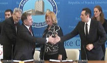 Београд/Бањалука, 21. фебруар 2015. године – Министар за рад, запошљавање, борачка и социјална питања у Влади Републике Србије Александар Вулин присуствовао је данас у Бањалуци потписивању Споразума о електронској размени података у области пензијског и инвалидског осигурања (ПИО) који су потписали директор Фонда ПИО Републике Србије Драгана Калиновић и директор Фонда за пензијско и инвалидско осигурање Републике Српске (РС) Младен Милић.