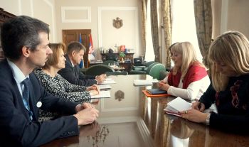 Београд, 9. март 2015. године – Министар без портфеља у Влади Републике Србије задужен за европске интеграције Јадранка Јоксимовић разговарала је данас са извршним директором Канцеларије УН за пројектне услуге (УНОПС) Гретом Фаремо о пројектима које УНОПС спроводи у сарадњи са министарствима и локалним самоуправама.