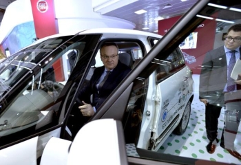 Сертић је обишао штанд компаније "Фијат" и сео у "фијат 500 л" са погоном на метан, који се производи у Крагујевцу.