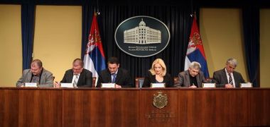 Београд, 24. март 2015. године – Потпредседник Владе Републике Србије и министар грађевинарства, саобраћаја и инфраструктуре Зорана Михајловић, генерални директор „Железница Србије“ Мирослав Стојчић и председници четири репрезентативна синдиката у железници потписали су данас нови Колективни уговор за „Железнице Србије“ а.д.