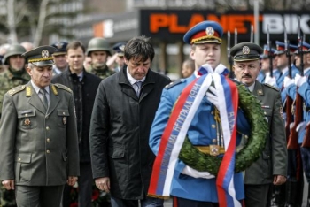 Београд, 6. април 2015. године – Министар одбране у Влади Републике Србије Братислав Гашић предводио је данас централну комеморативну свечаност полагања венаца и одавања највиших државних и војних почасти жртвама бомбардовања Београда 6. априла 1941. године, чиме је обележен Дан сећања на почетак Другог светског рата.