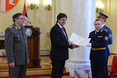 Београд, 24. април 2015. године – Министар одбране у Влади Републике Србије Братислав Гашић уручио је данас, у присуству начелника Генералштаба Војске Србије генерала Љубише Диковића, указе о унапређењу у виши чин и одликовања из надлежности председника Републике припадницима Министарства одбране и Војске Србије.