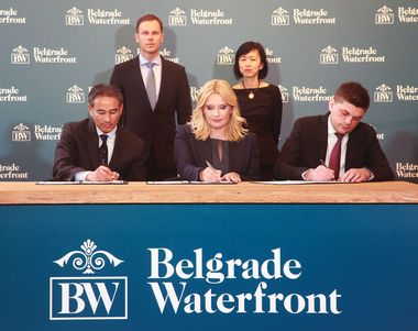 Београд, 26. април 2015. године – Потпредседник Владе Републике Србије и министар грађевинарства, саобраћаја и инфраструктуре Зорана Михајловић, председник УО компаније "Игл Хилс" Мухамед Алабар из Уједињених Арапских Емирата и директор "Београда на води" Александар Трифуновић потписали су данас Уговор о заједничком улагању у пројекат "Београд на води".
