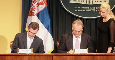 Београд, 27. април 2015. године – Министар привреде у Влади Републике Србије Жељко Сертић и представник компаније "Тенис" Данијел Нотброк потписали су данас Меморандум о разумевању, уз присуство премијера Србије Александра Вучића и власника ове немачке компаније Клеменса Тениса.