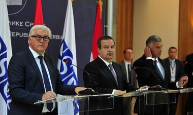 Први потпредседник Владе Републике Србије и министар спољних послова Ивица Дачић, који је и председавајући ОЕБС-у, рекао је након састанка Тројке у Палати Србија, на заједничкој конференцији за новинаре са министрима спољних послова СР Немачке и Швајцарске Конфедерације Франком Валтером Штајнмајером и Дидијеом Буркхалтером, да што пре треба успоставити политички дијалог.