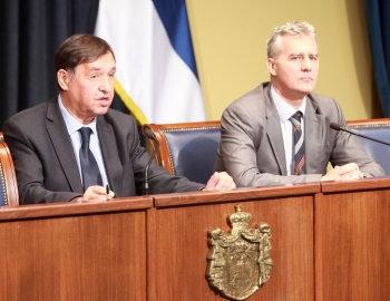 | Небојша Атанацковић и Зоран Лазић на данашњој конференцији за новинаре |