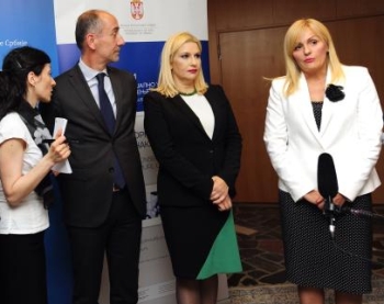 | Жан Ерик Паке, Зорана Михајловић и директор Канцеларије за људска и мањинска права Владе Србије Сузана Пауновић |