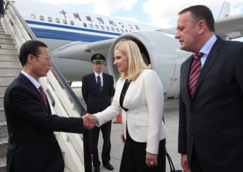 Делегација из Кине допутовала је у Београд у поподневним часовима, а током посете Србији разговараће и са председником Србије Томиславом Николићем и председником Владе Републике Србије Александром Вучићем.