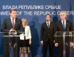 | Чланови влада Србије и Републике Српске на данашњој конференцији за новинаре |