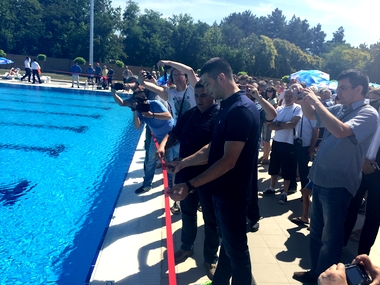 Рума, 4. јул 2015. године – Министар омладине и спорта у Влади Републике Србије Вања Удовичић присуствовао је данас свечаном отварању новог базена у Руми.