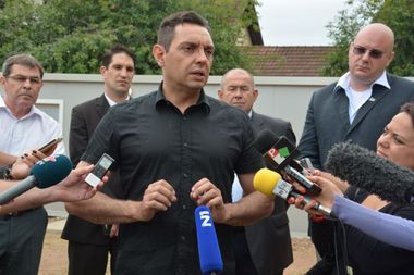 Кањижа, 31. јул 2015. године – Министар за рад, запошљавање, борачка и социјална питања у Влади Републике Србије Александар Вулин и председник Скупштине АП Војводине Иштван Пастор обишли су данас новопостављене монтажне објекте у дворишту полицијске станице у Кањижи кроз које ће дневно пролазити око 80 миграната.