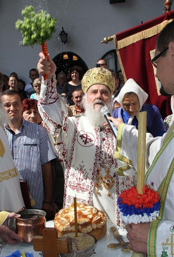 Патријарх Иринеј је у присуству великог броја верника освештао славске колаче домаћинима.