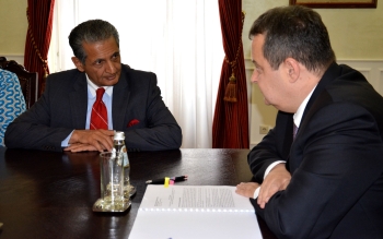 Београд, 18. август 2015. године – Први потпредседник Владе Републике Србије и министар спољних послова Ивица Дачић примио је данас у опроштајну посету специјалног представника генералног секретара УН за Косово и Метохију и шефа мисије Унмика Фарида Зарифа.