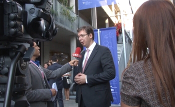 | Премијер Вучић даје изјаву за медије пред почетак Форума цивилног друштва |