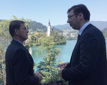 Вучић је током радног ручка, који је словеначки премијер организовао у вили Блед, предложио одржавање још једне заједничке седнице влада двеју земаља и позвао Церара у билатералну посету Србији.