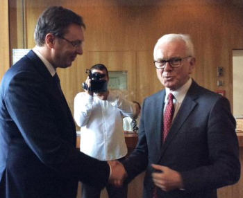 Он је подсетио на то да се Србија налази на путу ка ЕУ, и да је премијер Вучић предузео значајне кораке у циљу подстицања процеса европског приближавања, као што су споразуми у дијалогу Београда и Приштине, и присуство на комеморацији у Сребреници 11. јула.