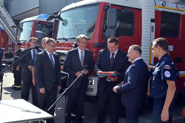 Ниш, 17. септембар 2015. године – Министар унутрашњих послова у Влади Републике Србије Небојша Стефановић изјавио је данас у Нишу да ће пет нових возила које је Руска Федерација донирала Србији значајно унапредити рад ватрогасно-спасилачке службе.