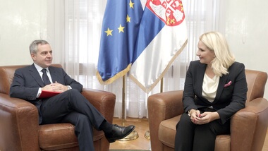 Београд, 6. октобар 2015. године – Потпредседник Владе Републике Србије и министар грађевинарства, саобраћаја и инфраструктуре Зорана Михајловић разговарала је данас у Влади Србије са потпредседником Европске инвестиционе банке (ЕИБ) Дариом Сканапјеком.