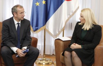 Београд, 13. октобар 2015. године – Потпредседник Владе Републике Србије и министар грађевинарства, саобраћаја и инфраструктуре Зорана Михајловић и шеф Делегације ЕУ у Србији Мајкл Девенпорт разговарали су данас о заштити жена, унапређењу родне равноправности, као и о бржој интеграцији Рома у све сегменте друштва у Србији.