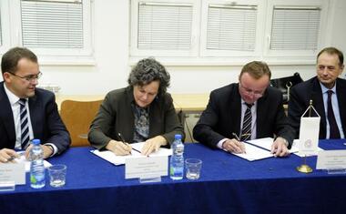 Београд, 14. октобар 2015. године – Потпредседник Владе Републике Србије и министар државне управе и локалне самоуправе Кори Удовички и декан ФОН-а у Београду Милија Сукновић потписали су синоћ споразум о сарадњи, који треба да омогући грађанима да буду боље упућени у рад јавне управе.