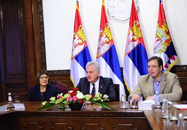 Састанку, који је одржан у згради Председништва Србије, присуствовали су председник Републике Србије Томислав Николић са саветницима, председник Владе Србије Александар Вучић, председник Скупштине Србије Маја Гојковић и потпредседник Владе и министар спољних послова Ивица Дачић.