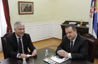 Београд, 22. октобар 2015. године – Први потпредседник Владе Републике Србије и министар спољних послова Ивица Дачић разговарао је данас са опуномоћеником немачког Министарства иностраних послова за југоисточну Европу, Турску и земље ЕФТА Ернстом Рајхелом о актуелним билатералним питањима, евроинтеграцијама Србије и међународним активностима.