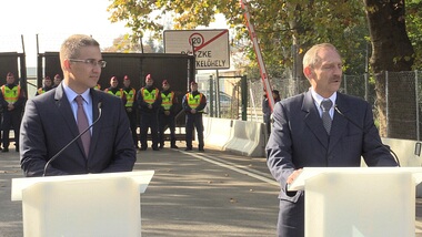 Хоргош, 22. октобар 2015. године – Министри унутрашњих послова Србије и Мађарске Небојша Стефановић и Шандор Пинтер данас су, симболичним уклањањем ограда, поново отворили за саобраћај прелаз Хоргош 2, који је због мигрантске кризе био затворен у претходних нешто више од месец дана.