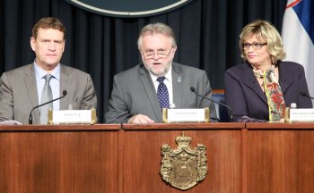 | Слева: Џејмс Руф, Душан Вујовић и Јоргованка Табаковић |