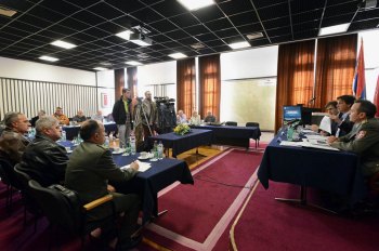 Београд, 12. новембар 2015. године – Министар одбране у Влади Републике Србије Братислав Гашић разговарао је данас са представницима репрезентативних синдикалних организација привредних друштава Одбрамбене индустрије Србије (ОИС) и синдикалних организација привредних друштава "ФАМ", "14. октобар", "Трајал корпорација" и "ФАП".