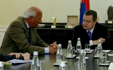 Београд, 16. новембар 2015. године – Први потпредседник Владе Републике Србије и министар спољних послова Ивица Дачић примио је данас, у својству председавајућег ОЕБС-у, свог специјалног представника за западни Балкан амбасадора Жерара Студмана.