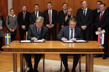 Београд, 17. децембар 2015. године – Министар унутрашњих послова у Влади Републике Србије Небојша Стефановић и амбасадор Краљевине Шведске у Србији Кристер Асп потписали су данас два споразума о помоћи Шведске МУП-у Србије, у вредности од девет милиона евра.