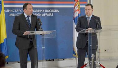 Београд, 30. децембар 2015. године – Први потпредседник Владе Републике Србије и министар спољних послова Ивица Дачић и министар спољних послова Босне и Херцеговине (БиХ) Игор Црнадак оценили су данас да су укупни односи двеју земаља у успону, уз изузетно добру трговинску размену.