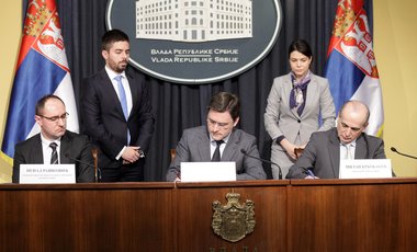 Селаковић, директор ЈП "Пошта Србије" Милан Кркобабић и директор Завода за израду новчаница и кованог новца Ненад Рашковић потписали су тим поводом уговоре којима се регулише пуна примена Закона о судским таксама и пуштање у малопродају таксених марака.
