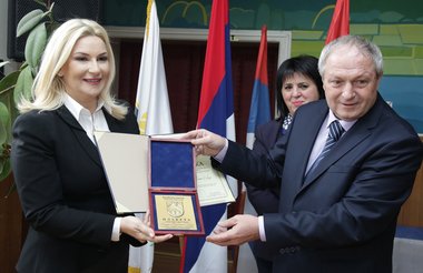Љубовија, 16. март 2016. године – Потпредседник Владе Републике Србије и министар грађевинарства, саобраћаја и инфраструктуре Зорана Михајловић примила је данас у Љубовији плакету за изузетан допринос развоју и просперитету општине Братунац.