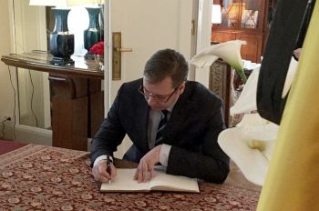 Београд, 24. март 2016. године – Председник Владе Републике Србије Александар Вучић уписао се данас у књигу жалости која је, поводом терористичких напада у Бриселу, отворена у Амбасади Белгије у Београду.