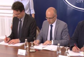 Нови Сад, 15. април 2016. године – Министар просвете, науке и технолошког развоја у Влади Републике Србије Срђан Вербић, градоначелник Новог Сада Милош Вучевић и директор „ЈУП Истраживање и развој“ д.о.о. Горан Квргић потписали су данас Протокол о сарадњи у оквиру „Програма модернизације школа“.