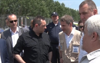 Хоргош, 27. мај 2016. године – Министар за рад, запошљавање, борачка и социјална питања у Влади Републике Србије Александар Вулин и шеф Канцеларије УНХЦР-а у Србији Ханс Фридрих Шодер обишли су данас импровизовани и неусловни камп на граници са Мађарском, који су мигранти сами направили.